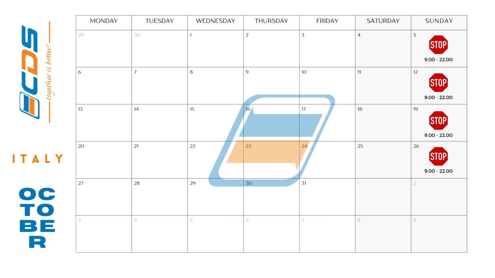 Calendari dei divieti di circolazione in Italia ed Europa - Ottobre 2025