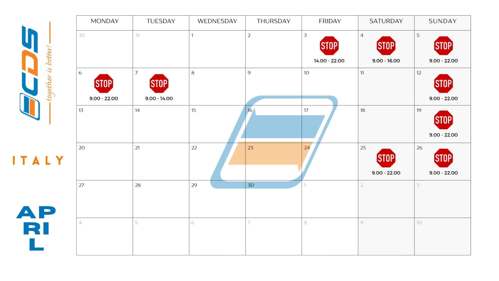 Calendario Divieti di Circolazione Italia ed Europa - Aprile 2026